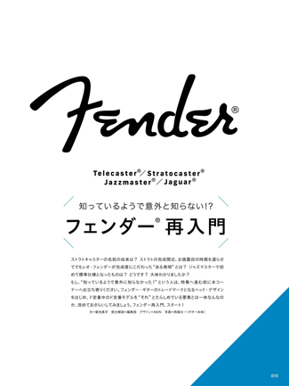 もし、"知っているようで意外に知らなかった!"という人は、特集へ進む前に本コーナーへお立ち寄り下さい。フェンダー・ギターのトレードマークとなるヘッド・デザインをはじめ、ド定番中のド定番モデルを"それ"とたらしめている要素とは一体なんなのか、改めておさらいしてみましょう。フェンダー再入門、スタート!