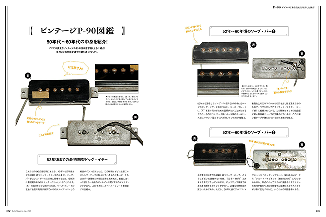 "エレキ・ギターのピックアップは2種類、シングルコイルとハムバッカーである"......というのは、ギターを弾き始めた誰もが初期の段階で覚えること。入門書ならば10ページ目には書いてあるだろう。だが、その区分けではシングルコイルに分類されつつも、決してその枠には収まりきらない独自の個性を放つピックアップが存在する。ピックアップ界における第三の刺客、それがギブソンの"P-90"だ。現代でも多くのギタリストがP-90搭載ギターを愛用しているが、実はこのピックアップ、ストラトキャスターやハムバッカーよりも古い歴史を持っていることはご存知だろうか? 本特集ではそんなP-90をさまざまな角度から紹介しつつ、その魅力に迫っていきたい。