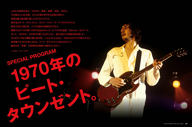 人生には四季がある。すなわち、青春、朱夏、白秋、玄冬だ。今を遡ること50年前。ひとりの男の早すぎる青春が終わり、季節は燃え盛る夏に差しかかろうとしていた。彼の名はピート・タウンゼント。ロック・バンド、ザ・フーのギタリストだ。前年である1969 年、バンドは怒れる若者だけでなく、苦悩するすべての者への祈りを込めたロック・オペラの大名盤『Tommy』をリリース。そして、1970年。その祈りが届いたかのごとく、彼らは数々の奇跡を巻き起こす。それがロック史に燦然と輝く金字塔、『Live At Leeds』で知られるライブの数々だろう。本特集では1970年における、ピート・タウンゼントに焦点を当てて、幾多もの"奇跡"を多角的な視座から眺めていきたい。