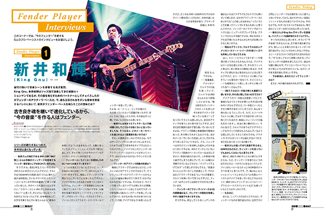 ・Fender Player Interviews...... 新井和輝(King Gnu)、露崎義邦(パスピエ)、首藤義勝(KEYTALK)、TENDRE、あいにゃん(SILENT SIREN)
