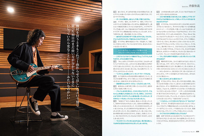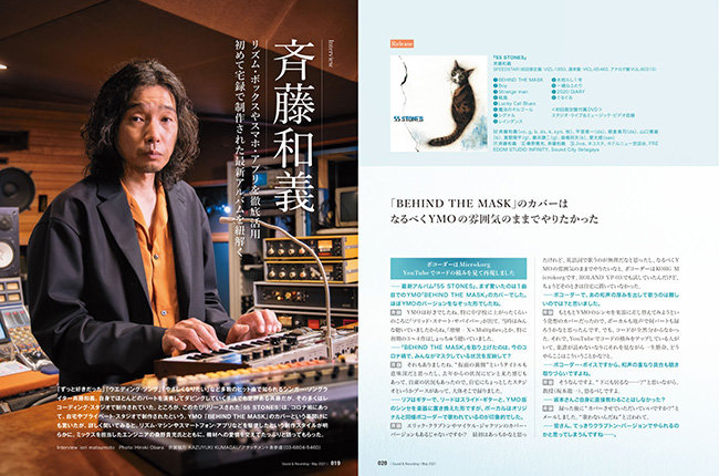 「ずっと好きだった」「ウエディング・ソング」「やさしくなりたい」など多数のヒット曲で知られるシンガー・ソングライター斉藤和義。自身でほとんどのパートを演奏してダビングしていく手法でも定評ある斉藤だが、その多くはレコーディング・スタジオで制作されていた。ところが、このたびリリースされた『55 STONES』は、コロナ禍にあって、自宅やプライベート・スタジオで制作されたという。YMO 「BEHIND THE MASK」のカバーという幕開けにも驚いたが、詳しく聞いてみると、リズム・マシンやスマートフォン・アプリなどを駆使したという制作スタイルが明らかに。ミックスを担当したエンジニアの桑野貴充氏とともに、機材への愛情を交えてたっぷりと語ってもらった。