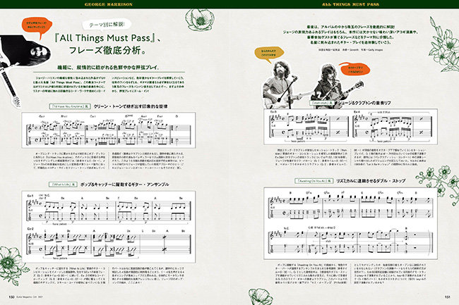 1970年、ロック史上における金字塔が誕生した。"静かなビートル"と呼ばれたジョージ・ハリスンが、バンド解散後にほかの誰よりも早くヒットさせた大胆不敵なソロ作、『All Things Must Pass』である。そうそうたる面子の仲間たちを巻き込み、これまでになく自由な発想で紡いだ本作は、LP3枚組という当時としても異例の超大作となった。そこで聴ける、奥深くのびやかなメロディで鳴らされたスライド・ギターは、多くの聴衆の耳を虜にしていったのは言うまでもない。同時に、ジョージ自身のくすぶった魂も解放され、ギタリストとしての才能を大きく開花させていくことになったのだ。発表から半世紀の時を経て、本作の50周年記念盤が今年日本でリリースされた。そこで改めて、この作品の魅力を思い返してみようではないか。"ギタリスト=ジョージ・ハリスン"を飛躍に導いた本作を今一度考察するべく、多方面からその魅力を紐解いていく。