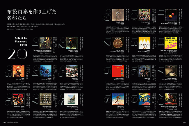 本特集に際して、布袋寅泰というギタリストを形成した作品を20枚、自身で選んでもらった。どれも布袋がこよなく大切にしている名盤たちだ。