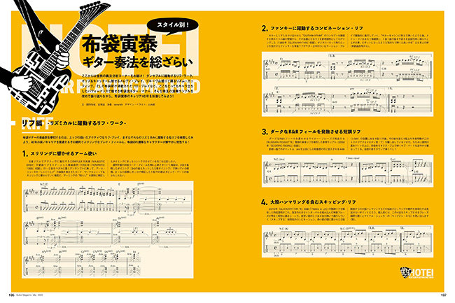 ここからは恒例の奏法分析コーナーをお届け! ダンサブルに躍動するリフ・ワーク、ポップ&キャッチーに魅せるメロディ・プレイ、グルーヴ山盛りで踊るリズム・カッティング、そして布袋節が満載されたソロ・プレイなど、どこをとってもキャラ立ちしたパフォーマンスで魅せる布袋流ギター・マナー。そんな珠玉の演奏サンプルを改めて振り返りながら、布袋寅泰のキャリア40年を反芻してみよう!