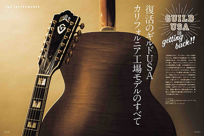 ご承知のとおり、アメリカン・ギターの雄ギルドには、経営元や生産拠点について激動の歴史がある。しかし2014年、コルドバ傘下へ移り、南カリフォルニアのオックスナードに工場を新設して以降、その体制やラインナップは充実の時を迎えている。豪放磊落なサウンド・キャラクターはそのままに、各部のブラッシュアップが着実に実を結んでいるのだ。今回はブランド・ヒストリーや伝統的な仕様を振り返るとともに、スタッフ・インタビュー、工場レポート、USA製主要6モデルの試奏により、現行器の魅力をひも解いていく。試奏者に迎えたのは田島貴男(ORIGINAL LOVE)。各ギターのインプレッションはもちろん、闊達に語るギルド観は金言だらけ。無骨にして繊細さを兼ね備える今のギルド、さてその実力やいかに――。