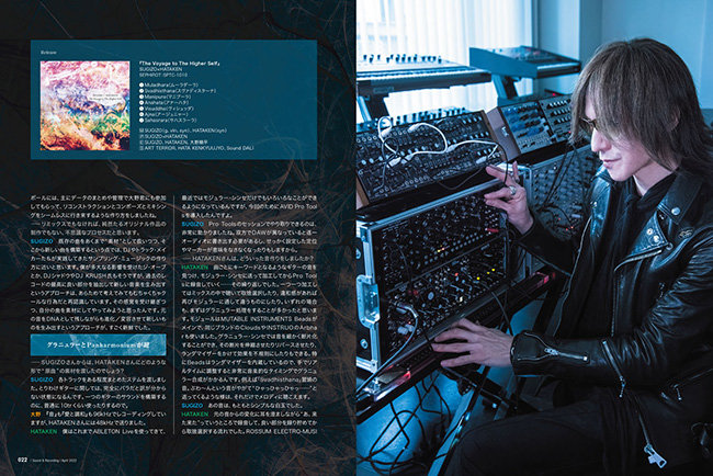 LUNA SEAやX JAPANのギタリスト&バイオリニストとしても活躍しているSUGIZOとモジュラー・シンセ界の雄HATAKENがタッグを組み、SUGIZO×HATAKEN名義での初のオリジナル・アルバム『The Voyage to The Higher Self』をリリース。2人のコラボレーションは、2020年に発表されたSUGIZOのソロ作『愛と調和』でも大きな成果を挙げたが、それを深化させたのが本作と言える。全7曲のアンビエントは、古来からインド哲学に伝わる、人の心身を整える7つのエネルギー"チャクラ"をモチーフとしつつ、SUGIZOの過去2枚のアルバム『音』『愛と調和』の収録曲を解体/再構築したもの。聴きどころは、モジュラー・シンセを通し新たな生命が付されたギター・サウンドだ。ミキシングを手掛けたスタジオ・サウンド・ダリの大野順平氏を交え、SUGIZOのART TERROR STUDIOで話を聞く。