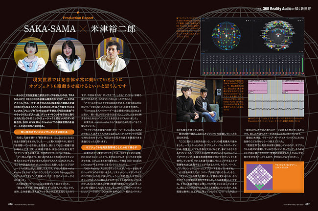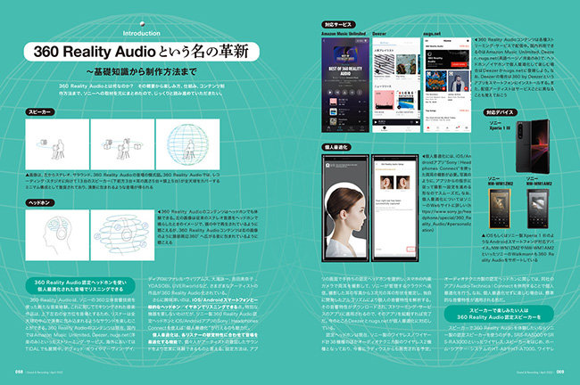 ソニーが昨年4月に日本でのサービスを開始した360 Reality Audio(サンロクマル・リアリティオーディオ)。ソニーの360立体音響技術を使った新しい音楽体験であり、上下左右の全方位から音に包み込まれるようなリスニング体験をもたらす。国内ではDeezer、nugs.netに加え、昨秋からはAmazon Musicでもヘッドホンで360 Reality Audioが楽しめるようになり、一段と身近になった。一方で、世界的に見ても360 Reality Audioのために制作された楽曲はまだ少ないのも事実だ。そこで、この特集では4人のイマーシブ・オーディオに長けたエンジニアへ360 Reality Audioでの楽曲制作をオファー。この企画に最適と思われるアーティストと組んで、360 Reality Audioしか表現できない楽曲を書き下ろしで制作してもらった。その制作をレポートしつつ、現時点での360 Reality Audioについての整理や、360 Reality Studio対応スタジオも併せて紹介していく。新しい音楽体験に飛び込む準備を、この特集を通じてしてほしい。