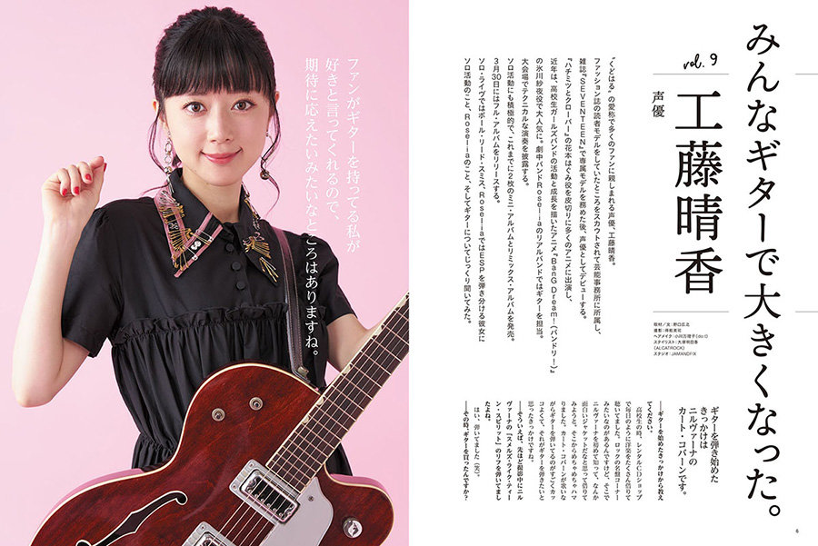 人気声優、工藤晴香を表紙巻頭でフィーチャー。アニメ『バンドリ!』の氷川紗夜役でリアルバンドのRoseliaでもギターを弾く彼女に、ソロ・アルバムのこと、Roseliaのこと、ギターのことについて聞く。