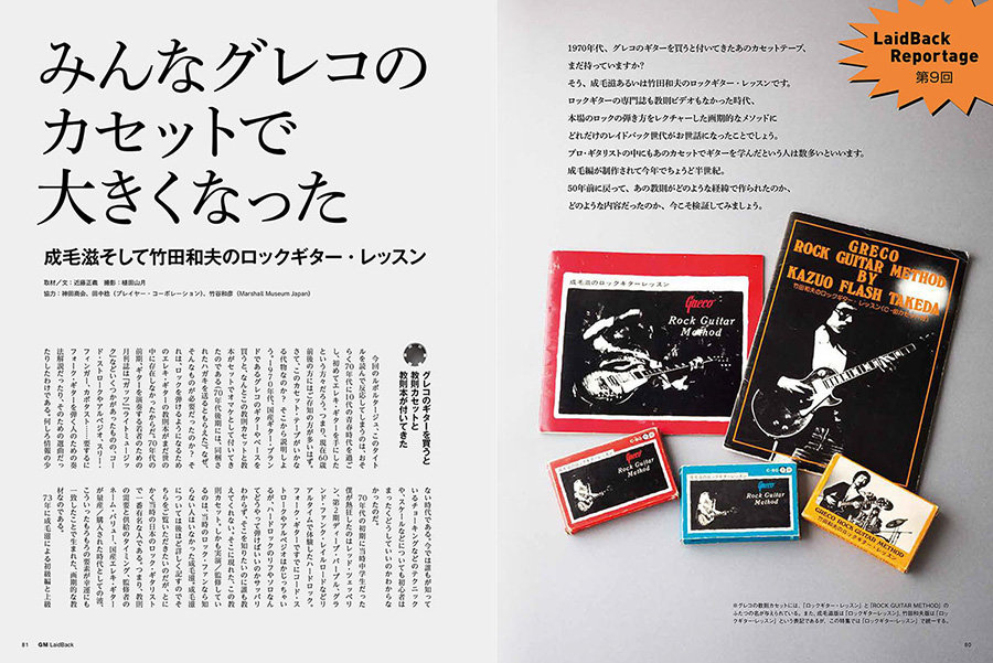 グレコのギターを買うと付いてきたあのカセットテープ、まだ持っていますか? そう、成毛滋のロックギターレッスンだ。竹田和夫が後を継いで、第2弾も作られた。まだロックギターの専門書がなかった時代、どれだけのレイドバック世代がお世話になったことか。あのカセットはどのような経緯で作られたのか、どのような内容だったのか、今こそ検証してみよう。