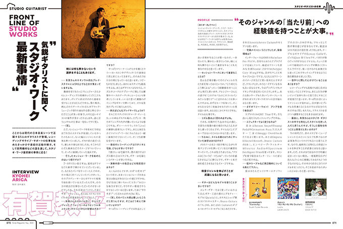 ここからは現代の日本音楽シーンで活躍する5人のギタリストが登場。レコーディングやライブ・サポートの仕事を始めたきっかけや普段の活動の様子、そして使用機材などの話を通して、スタジオ・ワーク最前線の事情に迫る!