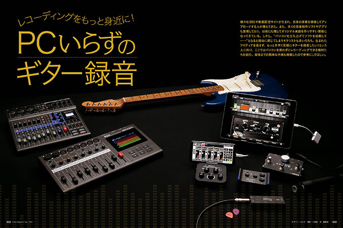 様々なSNSや動画配信サイトが生まれ、自身の演奏を録音してアップロードする人が増えてきた。また、多くの音楽制作ソフトやアプリも登場しており、以前にも増してオリジナル楽曲を作りやすい環境になってきている。しかし、"パソコンを立ち上げてソフトを起動して......"となると億劫に感じてしまうギタリストも多いだろう。生まれたアイディアを逃さず、もっと手早く気軽にギターを録音したい!という人に向け、ここではパソコンを使わずにレコーディングできる機材たちを紹介。録音までの簡単な手順も掲載したので参考にしてほしい。