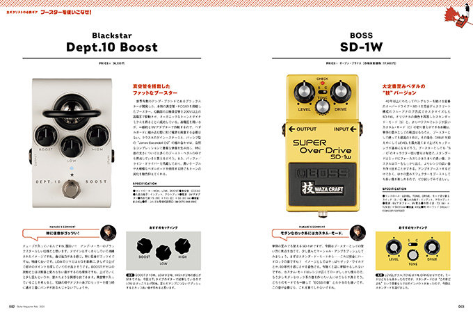 多くのギタリストがペダルボードに組み込んでいる定番エフェクトであるブースター。しかし、その最適な使い方やセッティングは目的によって千差万別!ゲインを稼ぎたい、音量をアップしたい、特定の帯域を強調したい......などなど、狙いどおりの効果を得るためには知識が必要です。本特集では基礎知識や名機の紹介、シチュエーション別のセッティング術、オススメ現行製品の試奏をとおして、ブースターを使いこなすための技を伝授します!