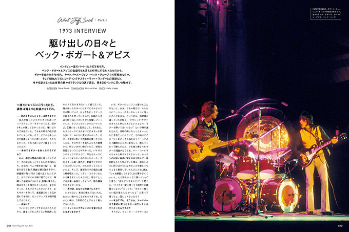 生涯にわたってギターと音楽を追求し続け、孤高の存在であり続けたジェフ・ベック。その哲学を彼の言葉から垣間見るべく、時期の異なる7本のインタビューを掲載する。読み進めながら作品を聴くことで、より深く、ジェフが残した音楽を噛み締めることができるはずだ。