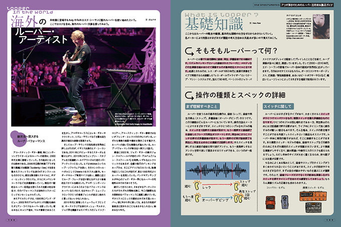 With コロナのギター界において、アコースティック・ギター・マガジンはルーパーという魔法の箱に注目したい。簡単にひとりふた役以上の演奏ができ、ソロ・アーティストにとって強い味方となる。それ以上に、レイヤー・サウンドによる独特のタイム感やハーモニー、そして音像はアンサンブルとも、ソロ・パフォーマンスとも異なる無二の世界を創り出す。エド・シーランを始め世界中の鬼才たちがその虜となり、もはやループ・ミュージックとも呼ぶべきひとつの音楽スタイルが確立されつつある。そんなループ・ペダルについて、今回は基礎知識から紹介する。加えてAnly、井草聖二、まるやまたつやの実例インタビュー、竹内アンナが3モデルを用いて操作法を実践、さらにReNの試奏コメントとともに最新9機種をオススメしよう。また、未来のルーパー使いを発掘すべく、コンテストを開催! ルーパーの楽しさに触れ、夢中になるきっかけとなれば幸いだ。