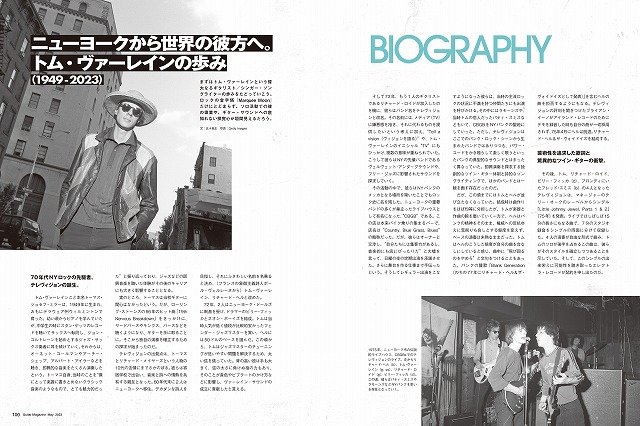 2023年1月28日、NYパンクを牽引し世界に衝撃を与えたテレヴィジョンのフロントマン=トム・ヴァーレインが逝去した。バンド活動の開始からその後のソロ活動まで終生にわたり独自のサウンドを追求し続けた姿勢は、全ギタリストの模範と言えるだろう。クリアに煌くエッジィなサウンドと、フリー・ジャズからロックンロールまで多様なルーツによって紡がれたギター・ワークは、70年代の音楽シーンを震撼させ、今の時代にも聴く者の心をとらえ続けている。突如笑い出したかと思えば一人語りし始める奇怪な歌い方や、彼が嗜んだ歴史や芸術のエッセンスを盛り込んだソングライティングなど、そのどれもがある特定の型にはめることができず(そうされないように彼自身が仕組んだ)、独創性に満ちた代えがたい人だった。そんなトム・ヴァーレインから、私たちが受け継ぐべきものはいったい何だろうか? この特集で紐解いていこう。