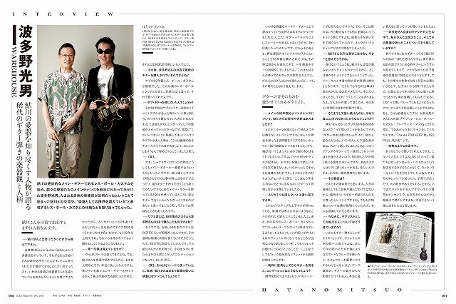 鮎川の絶対的なメイン・ギターであるレス・ポール・カスタムを始め、数々の愛器たちのメインテナンスを長年にわたって手がけた波多野光男。たまたま自身の楽器店が近所だったということで始まった鮎川との交流や、"楽器としての限界を超えている"と表現するレス・ポール・カスタムの仔細などを振り返ってもらった。
