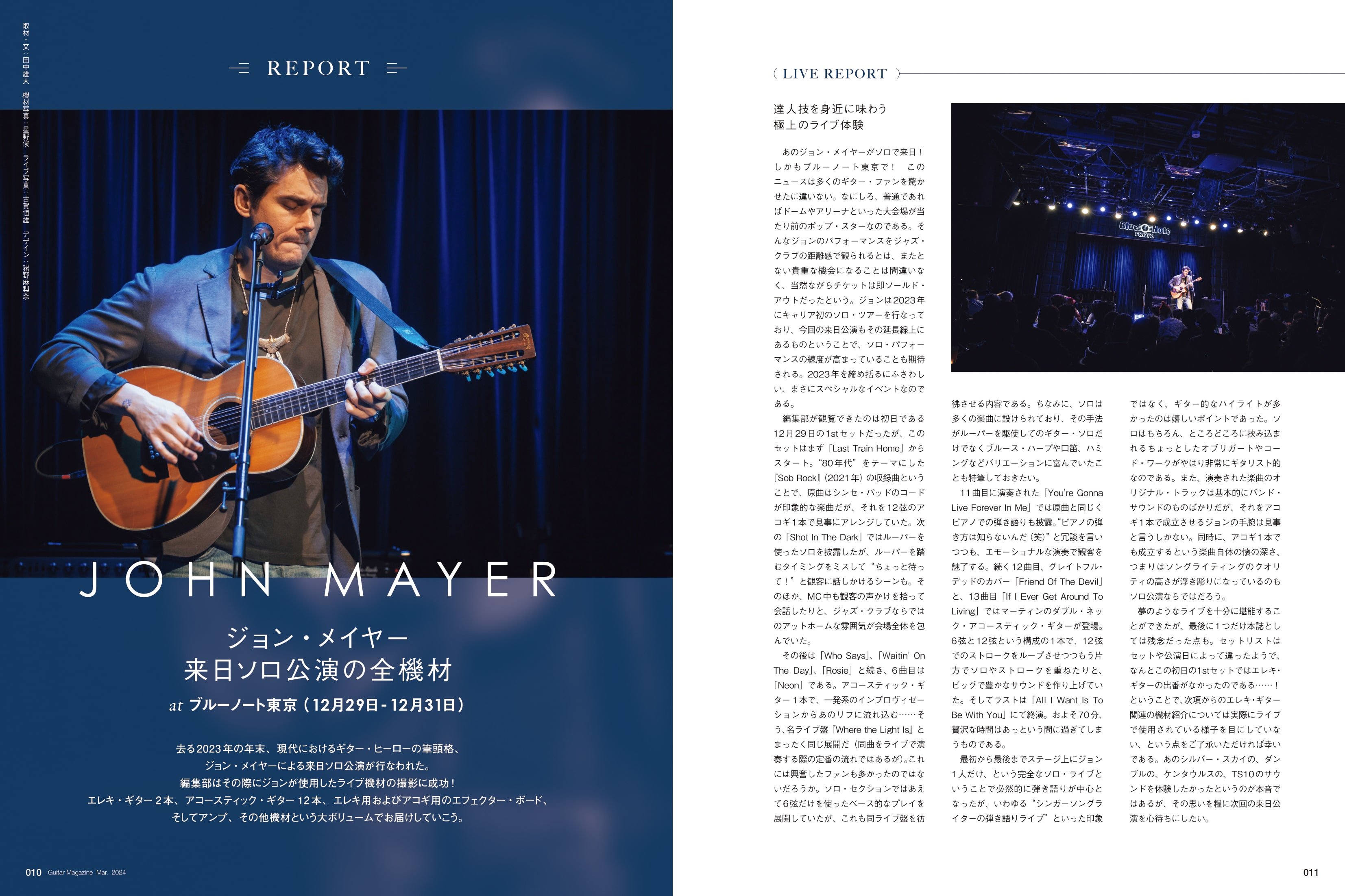 ・ジョン・メイヤー来日ソロ公演の全機材 at ブルーノート東京(12月29日-12月31日)