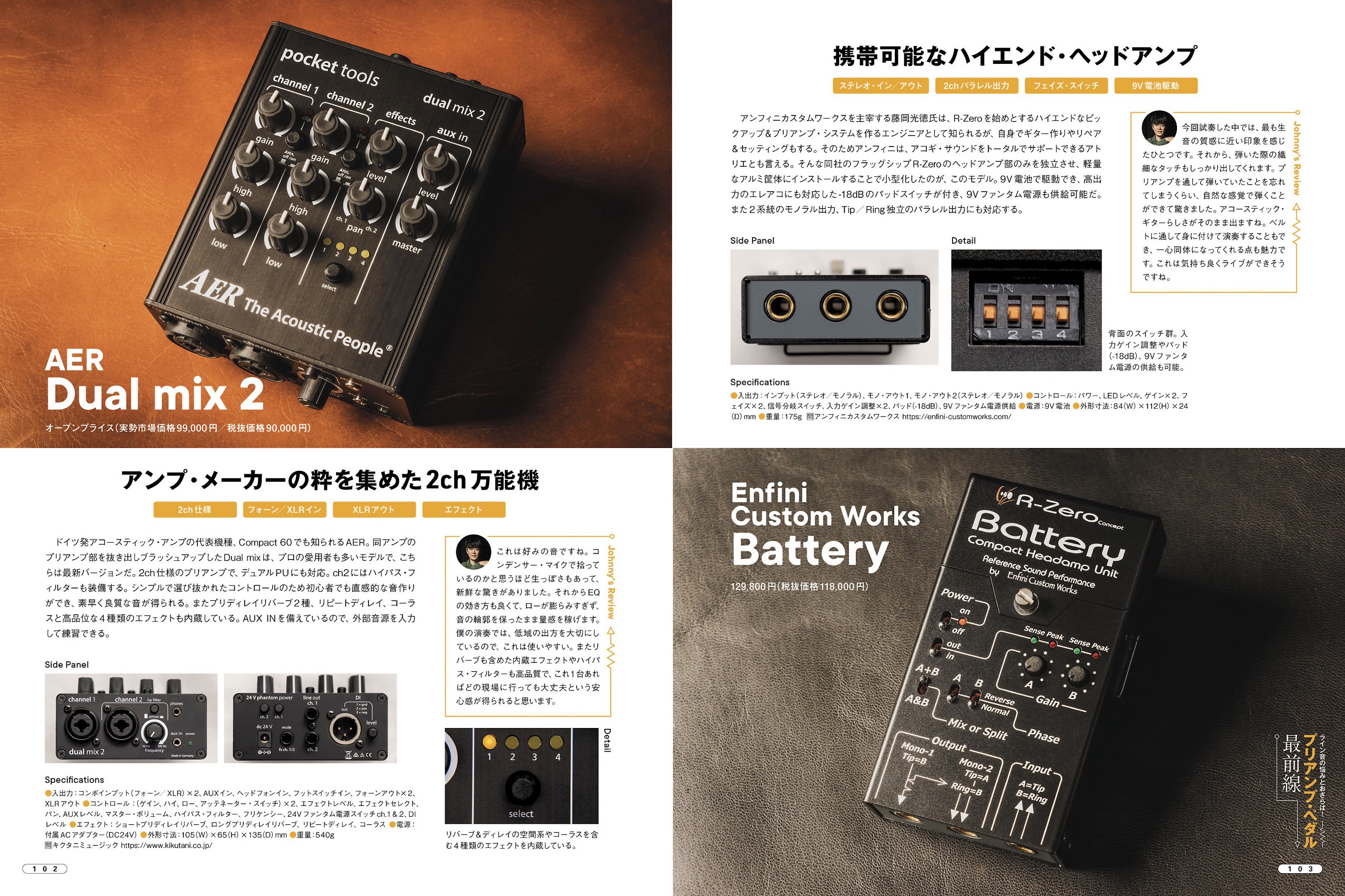 生楽器であるアコースティック・ギターの音を、アンプ/スピーカーからどのように鳴らすのか......そう考えたとき、プリアンプ・ペダルはギタリストにとって永遠の命題だ。混同しがちなDIも含めて各機能の役割をおさらいし、意図したサウンドをPAへ届けられるようになろう。その上で各社の粋を集めた現行8モデルを紹介する。また岸部眞明、沖仁やNAOKI(LOVE PSYCHEDELICO)といった音にシビアな名手の愛用モデルも公開。最前線のプリアンプ事情をひも解いていく。