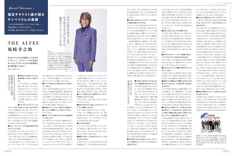 2023年10月8日、チンペイこと谷村新司が旅立った。ALICEでは「チャンピオン」や「冬の稲妻」などでヒットを飛ばし、ソロ・ミュージシャンとしても「昴-すばる-」や「いい日旅立ち」などの国民的銘曲を残したことは誰もが知るところ。また、1970年代中頃から後半に青春時代を過ごしたギタリスト達にとっては、「モーリス持てばスーパースターも夢じゃない」というキャッチコピーが使用されたモーリス(モリダイラ楽器)の広告も印象深いはず。実際にアリスをきっかけにギターを始め、ガッツのあるストロークを真似したという人も大勢おり、今やアコギ界のスーパースターとなった押尾コータローもそのひとりだった。本誌では、谷村新司の功績を讃えるべく、表紙巻頭にて追悼特集を敢行。本人がギターについて語った貴重なアーカイブ・インタビューのほか、彼が愛したギブソン・ダヴやヒゲギターと呼ばれたモーリスWJなどの愛器もじっくりと紹介する。