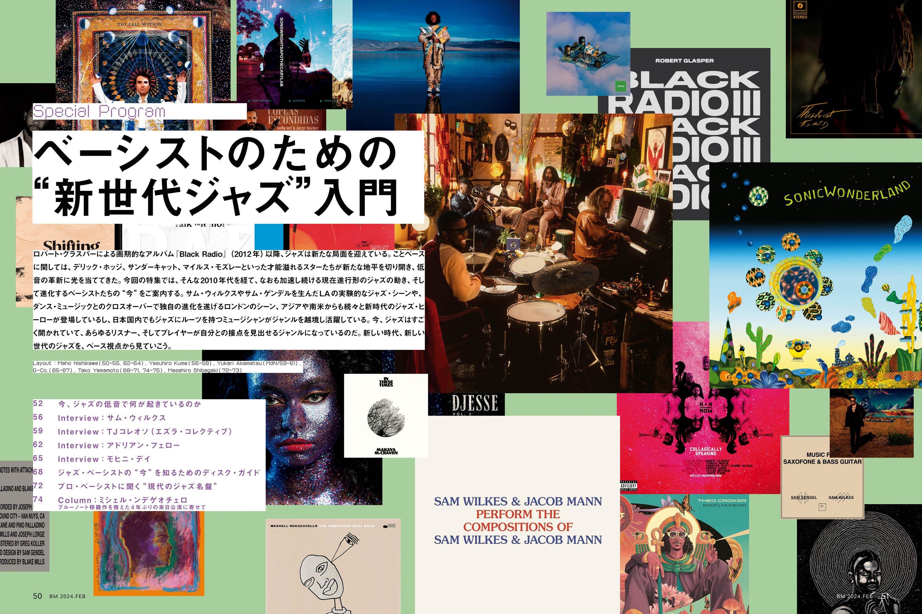 今回の特集では、そんな2010年代を経て、なおも加速し続ける現在進行形のジャズの動き、そして進化するベーシストたちの"今"をご案内する。サム・ウィルクスやサム・ゲンデルを生んだLAの実験的なジャズ・シーンや、ダンス・ミュージックとのクロスオーバーで独自の進化を遂げるロンドンのシーン、アジアや南米からも続々と新時代のジャズ・ヒーローが登場しているし、日本国内でもジャズにルーツを持つミュージシャンがジャンルを越境し活躍している。今、ジャズはすごく開かれていて、あらゆるリスナー、そしてプレイヤーが自分との接点を見出せるジャンルになっているのだ。新しい時代、新しい世代のジャズを、ベース視点から見ていこう。