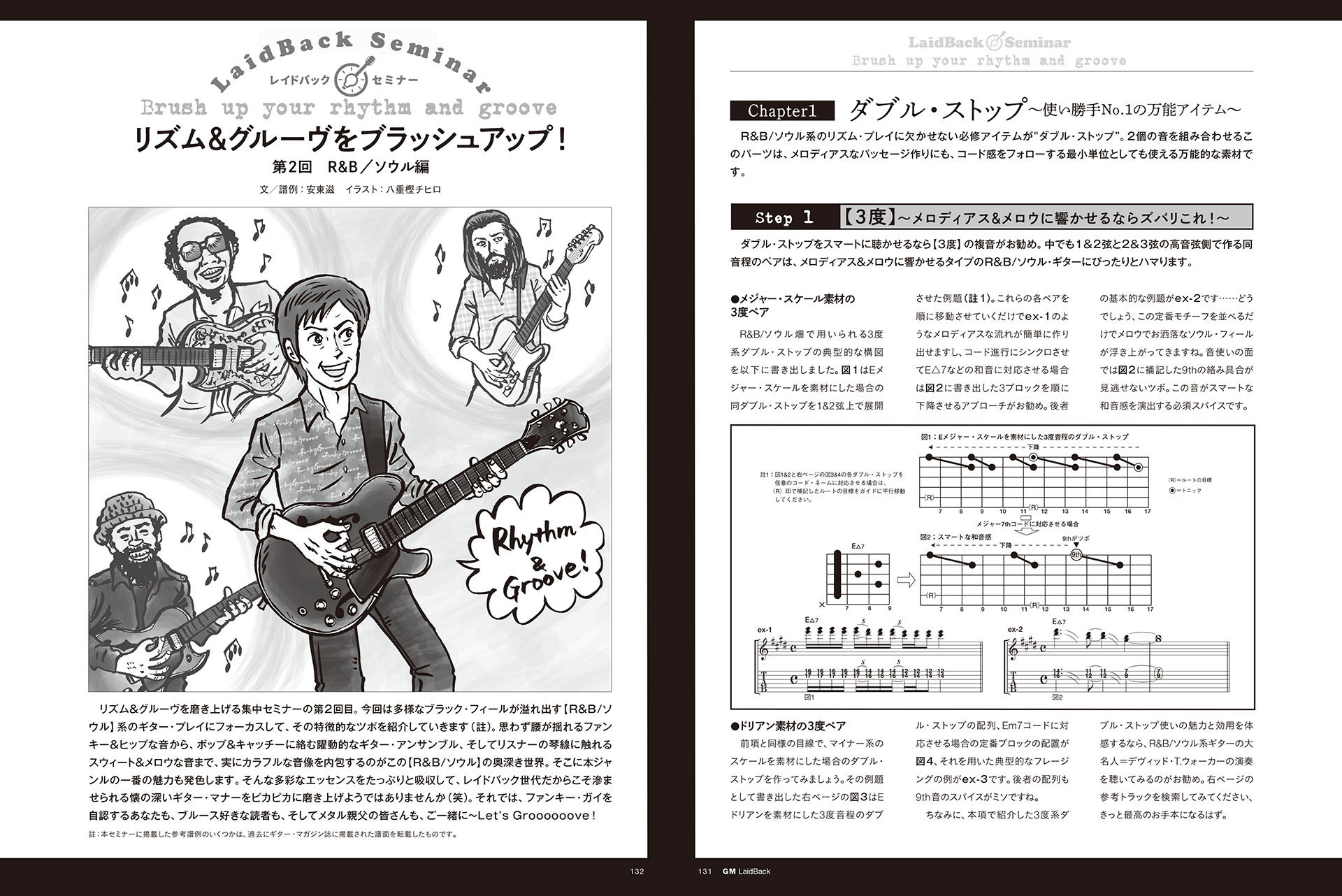 リズム&グルーヴを磨き上げる集中セミナーの第2回目。今回は多様なブラック・フィールが溢れ出す【R&B/ソウル】系のギター・プレイにフォーカスして、その特徴的なツボを紹介していく。ご一緒に~Let's Groooooove!