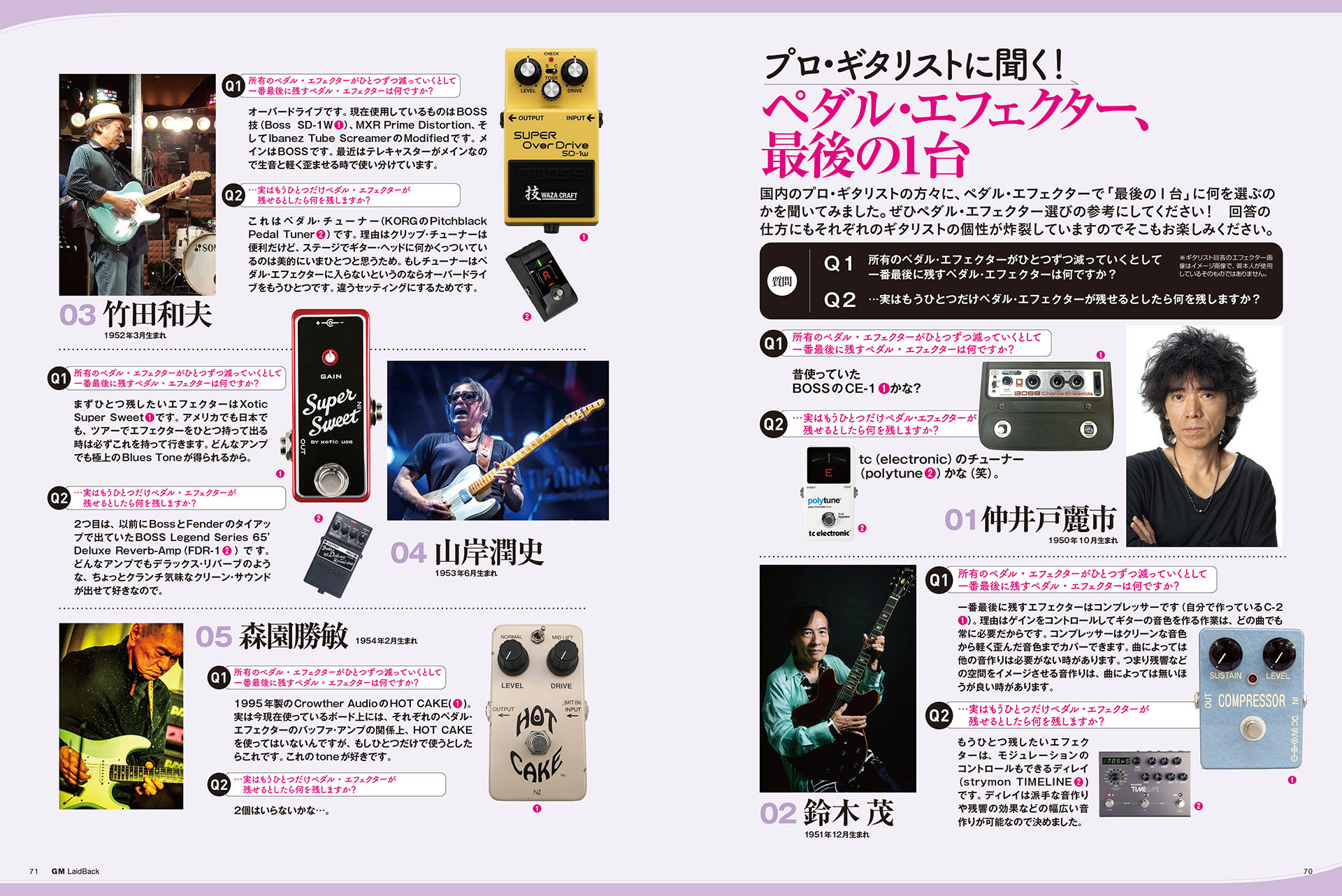 自分が持っているペダル・エフェクターがもしひとつずつ減っていくとしたら...その時に一番最後に残すペダル・エフェクターは何なのか? 「最後に残ったペダル・エフェクター」「そのペダル・エフェクターを選んだ理由」「通常どのように使っているのか」をレイドバック世代のプロ・ギタリストたちに教えてもらった。それぞれの選択内容の違いを楽しむのはもちろん、自身のエフェクター選びの参考としても役立つ企画。