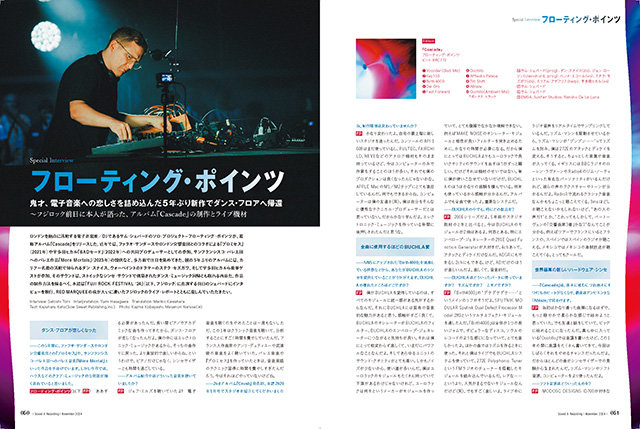 9月13日リリースのニュー・アルバム『Cascade』でも、独自のテクノ〜エレクトロニック・サウンドを披露しているフローティング・ポインツ。本人への対面インタビューで明かされた制作テクニックや注目のシンセとは? そして『FUJI ROCK FESTIVAL'24』のライブ・セットの仕組みとは?......本稿では、アルバムに関するコメント+フジロックのライブ・レポートで、最新のフローティング・ポインツに迫ります。