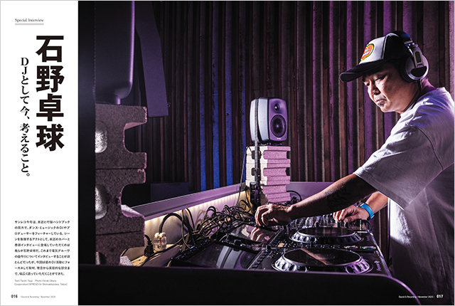 サンレコ今号は、本誌と付録ハンドブックの両方で、DJやダンス・ミュージックのプロデューサーにフォーカス。シーンを象徴する国内アクトとして、石野卓球が本誌のカバー&巻頭インタビューに登場します。DJを始めたきっかけから活動の仕方、実技的な部分まで、ユーモラスなエピソードを交えつつ語ってくれたので、彼のDJ像に学びたい方は必読! 撮り下ろしカットや使用ツールの写真とともに展開します。
