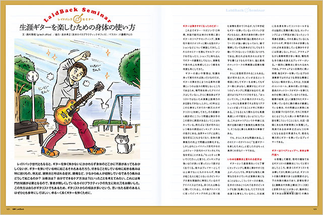 ギタリストが陥りやすい手や腕のトラブル、そして腰のトラブルなどを避けるにはどうしたらいいか。カイロ・プラクティックの観点から、その防止法を伝授する。