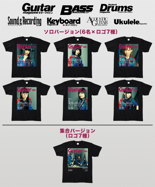 このTシャツは、『ギター・マガジン』、『ベース・マガジン』、『リズム&ドラム・マガジン』、『サウンド&レコーディング・マガジン』、『キーボード・マガジン』、『アコースティック・ギター・マガジン』、『ウクレレ・マガジン』の7つの楽器専門誌の表紙を、BiSHのメンバー(ソロ/集合)が飾っている風のデザイン。