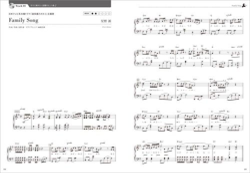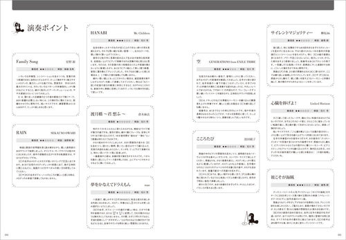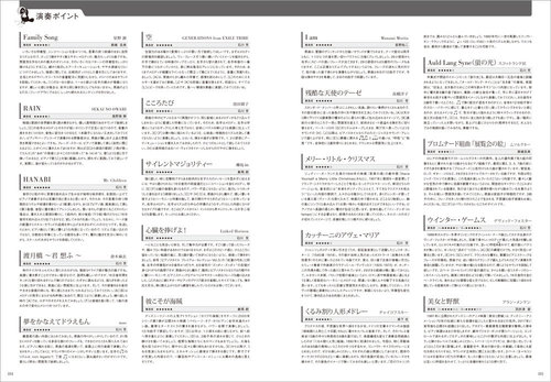 *「中級〜上級編」は歌詞なし。収録内容は19曲中18曲が同一となります。こちらは歌詞なし。「初級〜中級編」「中級〜上級編」の2冊を並べると表紙の絵が繋がる仕様です。
