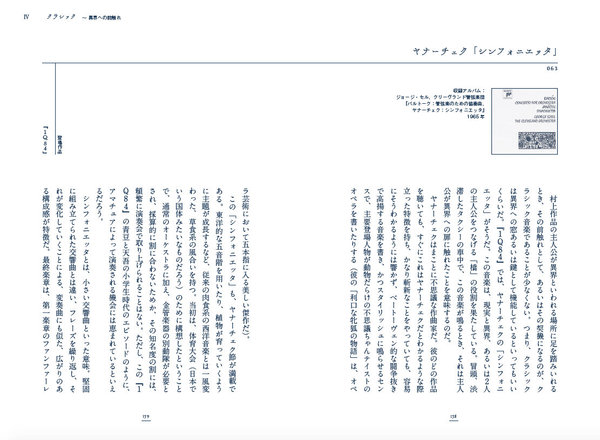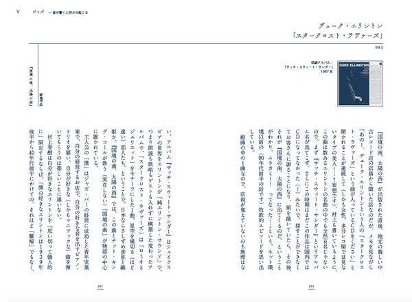 曲紹介を読んでいるうちに、小説の紹介になって、どうしてその曲が使われているのかもわかるようになるという、曲紹介からはじまる、新しい小説の読み方を提案しています。これ1冊で、村上春樹の小説も、登場する音楽もわかるようになっているのです。