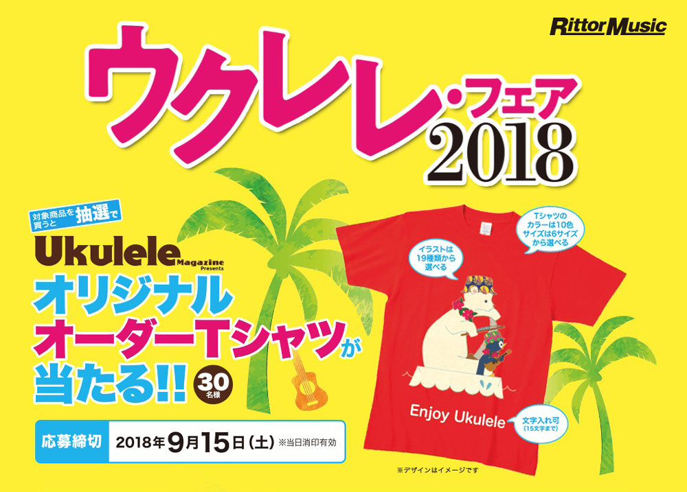 シーズン到来! ウクレレ・マガジンpresentsオリジナルオーダーTシャツが当たる! 「ウクレレ・フェア2018」が今年も開催【応募締切2018年9月15日】