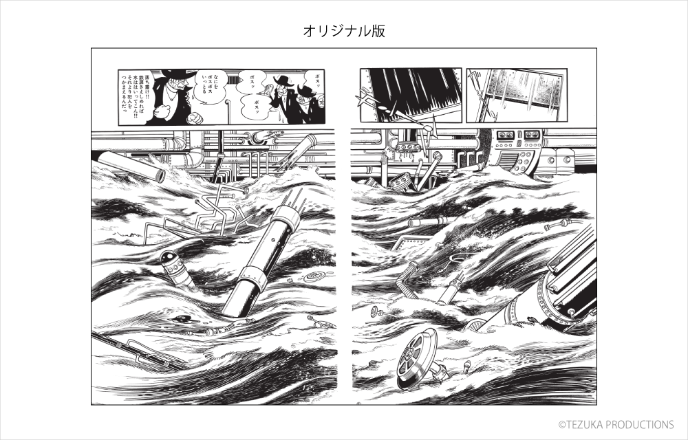 P485:オリジナル版では迫力のある見開き表現だが、全集版では左ページは非掲載