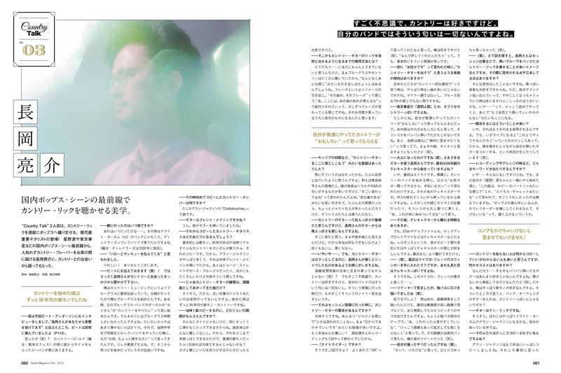 にもかかわらず、歴史もスタイルもあまりに広く深すぎるゆえ、本誌も今までうかつに手が出せませんでした。誰もがその影響を享受しているのに、カントリーの魅力は十分に伝わりきっていない......そんな現状を打破できればと思い、この企画を立ち上げました。