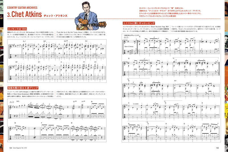 特集内に登場した6人が生み出した、必殺のカントリー・フレーズ集を譜面で楽しむコーナー。