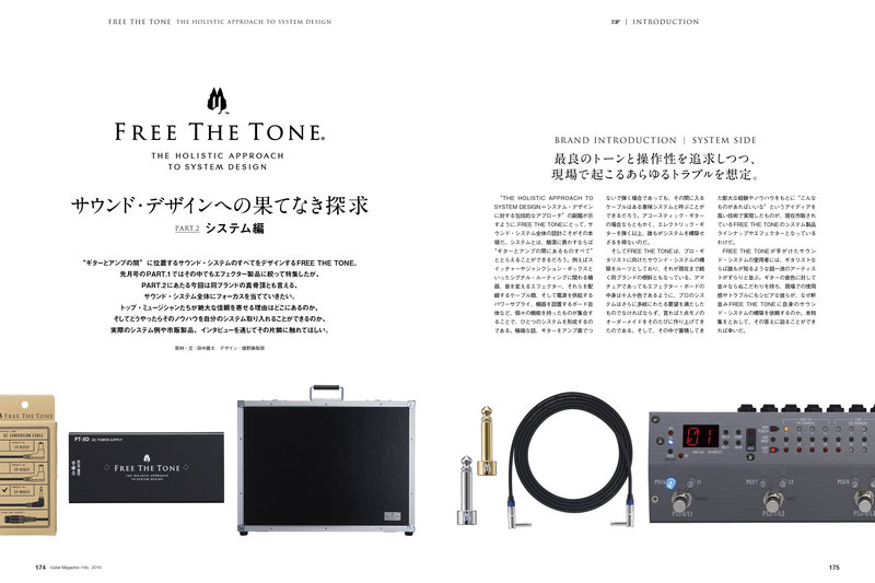 "ギターとアンプの間"に位置するサウンド・システムのすべてをデザインするFREE THE TONE。先月号のPART.1ではその中でもエフェクター製品に絞って特集しましたが、PART.2にあたる今回は同ブランドの真骨頂とも言える、サウンド・システム全体にフォーカスを当てていきます。トップ・ミュージシャンたちが絶大な信頼を寄せる理由はどこにあるのか、そしてどうやったらそのノウハウを自分のシステム取り入れることができるのか、実際のシステム例や市販製品、インタビューを通じてその片鱗に触れていきます。