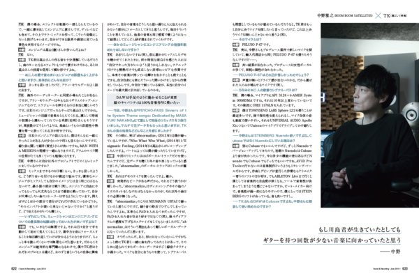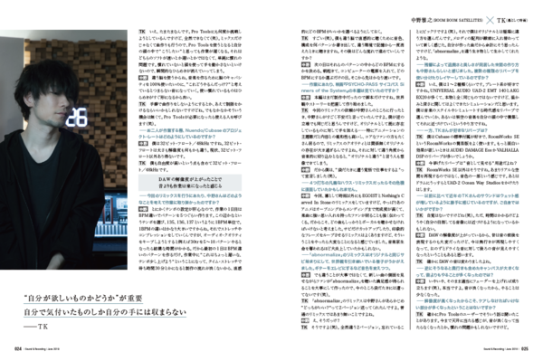 中野雅之(BOOM BOOM SATELLITES)×TK(凛として時雨) 『サウンド&レコーディング・マガジン2019年6月号』にて "セルフ・エンジニアリング・クリエイター"初対談が実現!