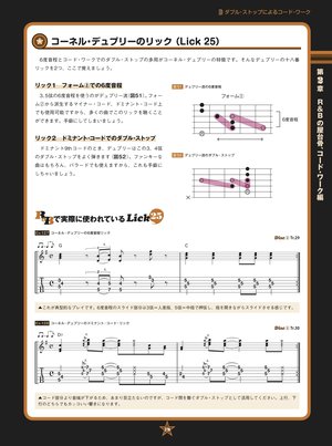やはりこれまで日本ではなかったR&Bギターの教本ということで、既存のギター教本ではあまり強調されてこなかった部分が学べます。本書には「2小節の間で1回複音を鳴らすだけ」みたいな文字にすると簡単そうなフレーズもありますが、弾かない部分でもしっかりとリズムを感じていないと上手に良い感じには弾けません。従来の教本では習得できていないギター演奏技術の補講としてもとても有効な内容なのです。