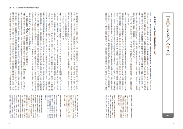 本書では、商業映画デビュー作『HOUSE/ハウス』や角川映画の尾道三部作、それ以前の「マンダム」CMや個人映画作品などから最新作『海辺の映画館―キネマの玉手箱』まで、すべての作品を網羅。監督自身の口から溢れ出す各作品のバックグラウンドは、まさに奇跡の集大成とでも呼ぶべきものです。本書をひもとけば、大林宣彦のワンダーランドがいかにして作られてきたのか、つぶさに知ることができます。