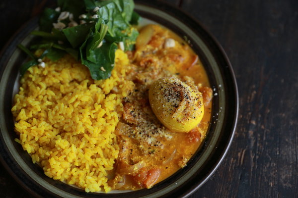 ざく切りトマトに固ゆで卵が合う、ゆで卵カレー