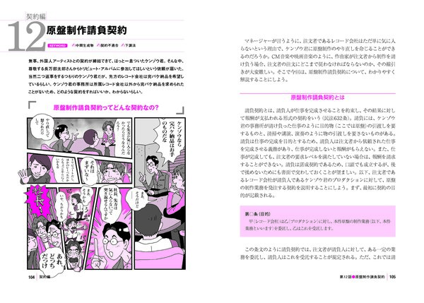 「実践編」は、書き下ろし2話を加え、最新の海外の著作権事情などを取り⼊れて、全編リニューアル。各種ケースに対応した契約書フォーマットが付いた、実践的バイブルの最新改訂版です。現場でよく使う英文契約書の解説もさらに充実させました。現場で役⽴つさまざまなケースへの実務上の適切な対応を、マンガ付きのケース・スタディ形式でわかりやすく紹介しているので、必要な項⽬から読み進めることができます。本書は本格的かつ、たいへん⼿に取りやすい⾳楽著作権ビジネスの指南書です。