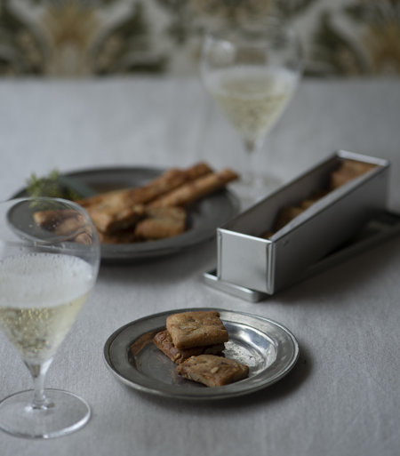チーズサブレ2種(ブルーチーズサブレ・チェダー&カレーサブレ)/ぴり辛スパイスナッツ2種(麻辣ピーナッツ・スパイスナッツ)/ドライフルーツバター2種(プルーンバター・いちじくバター)/サーモンチーズディップ/リエット/柑橘ピールとヴァンショー