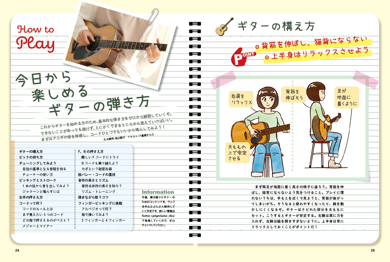アコギ弾き語り初心者へ向けたムック『はじめましてのアコギ弾き語りブック』が発売中、大石昌良や須田亜香里(SKE48)のインタビュー、15曲のスコア集など掲載!