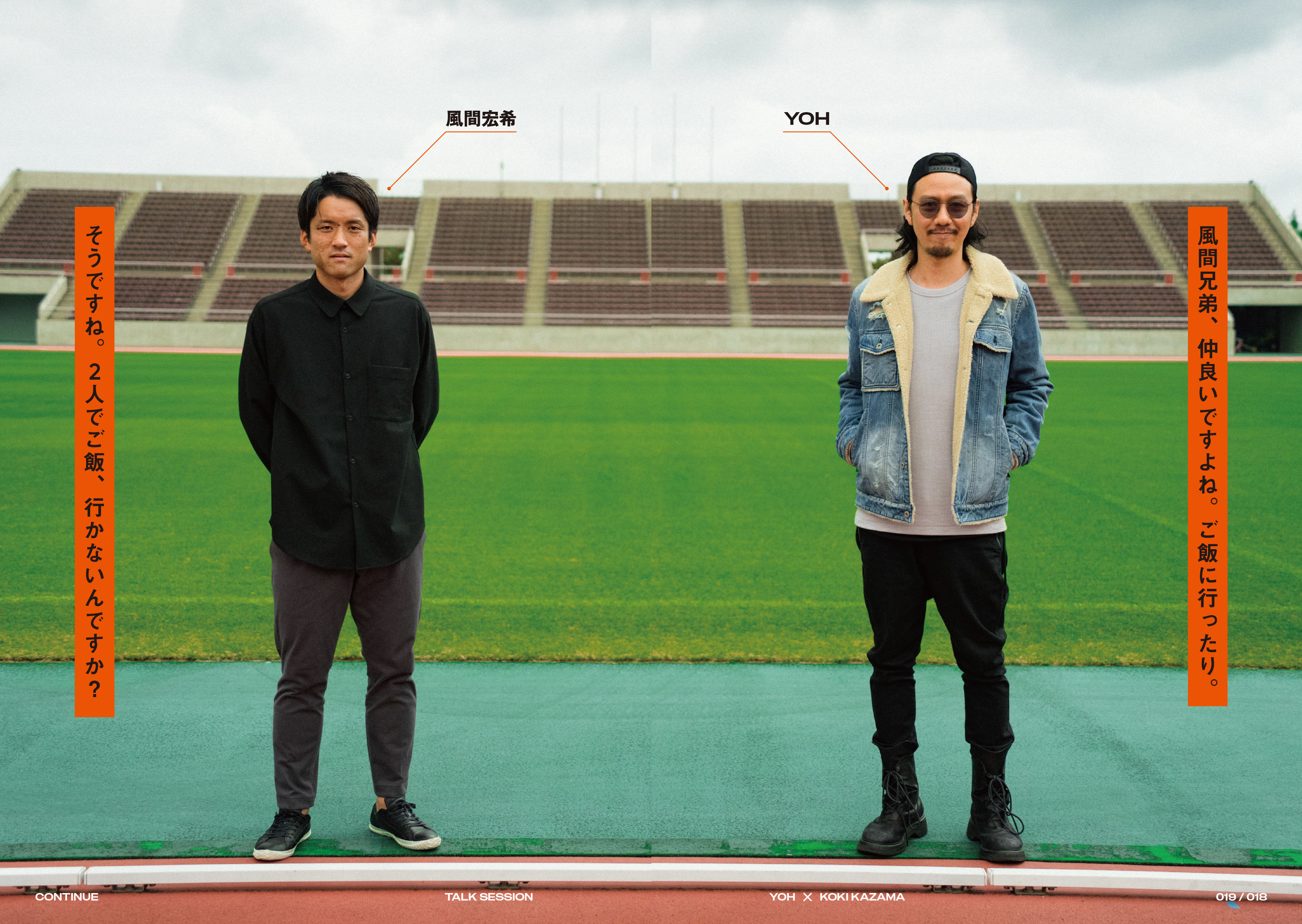 YOHが自ら声をかけたのは2021年シーズンまでFC琉球に在籍し、2022年からはザスパクサツ群馬へと活躍の場を移したJリーガー、風間宏希選手。YOHはベース、風間選手はミッドフィルダーとして、ジャンルは違えどバンドやチームの"中盤の底"を支える者同士の共感にあふれた対談となりました。