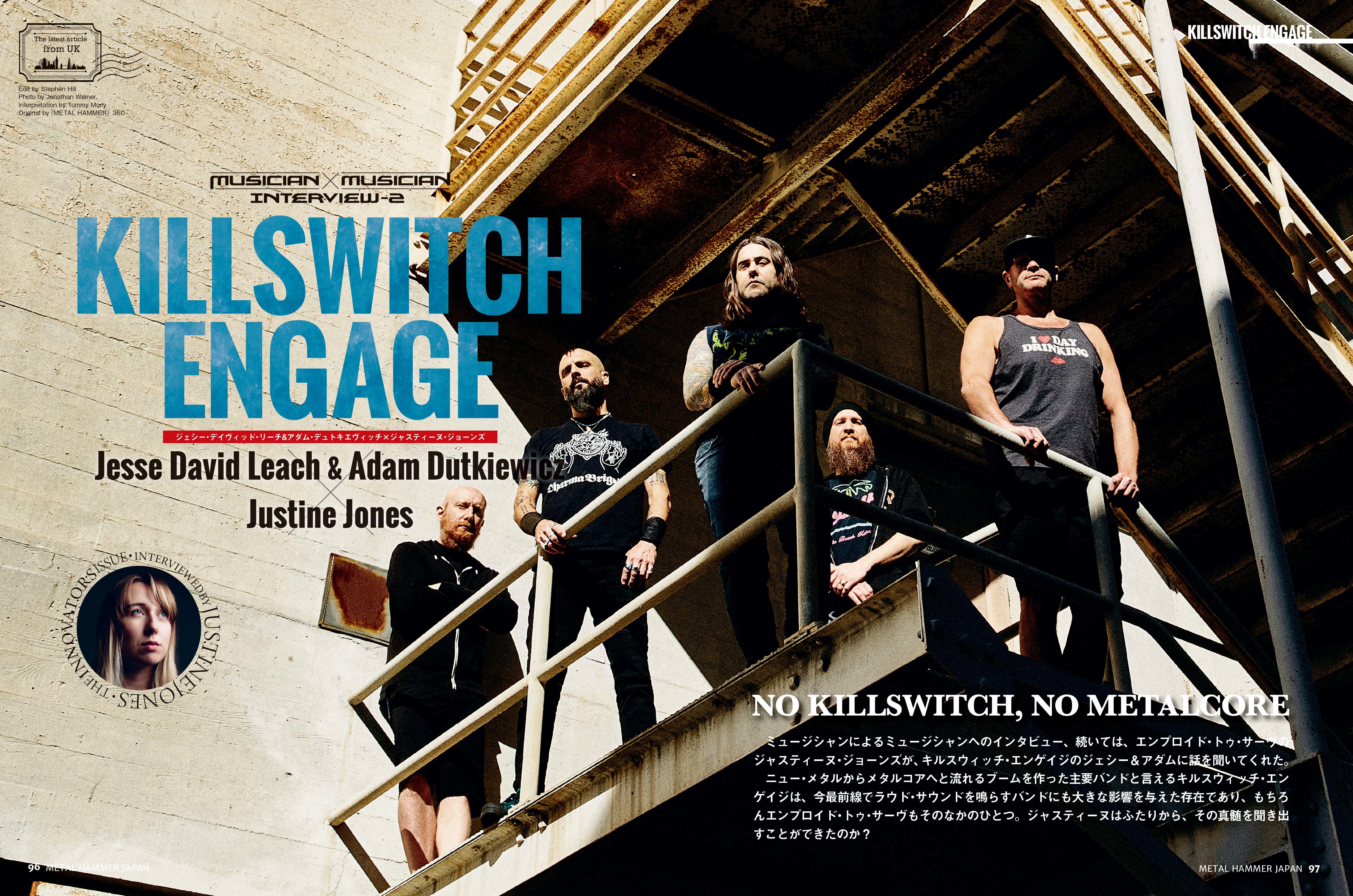続いての"ミュージシャンによるミュージシャンへのインタビュー"は、メタルコアの王者キルスウィッチ・エンゲイジのジェシー・リーチとアダム・デュトキエヴィッチに、彼らから多大なる影響を受けたエンプロイド・トゥ・サーヴのシンガー、ジャスティーヌ・ジョーンズが突撃! KSEの活躍をリアルタイムで体感してきた彼女ならではの質問が、ふたりの本音をグイグイと引き出す!
