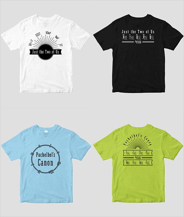 そんな名曲たちのコード進行を、ダイアグラム&ディグリー・ネーム(スケールにおけるローマ数字の度数)付きでTシャツにしました。シリーズ第1弾として、「Just The Two Of Us」進行、「カノン」進行、「Let It Be」進行、「Fly Me To The Moon」の4種類のコード進行パターンをラインナップ。このTシャツを着て、名曲のコード進行を体に刻み込みましょう。
