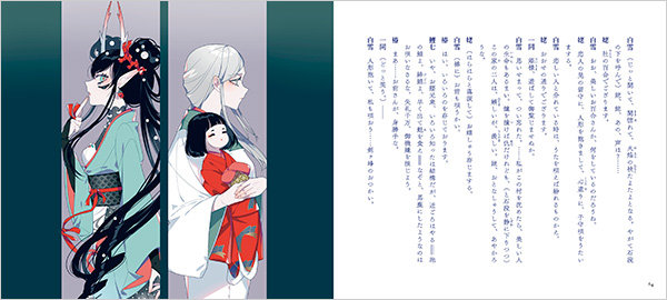 「乙女の本棚」とは、文豪の名作に、現代のイラストレーターが自由な感性でイラストを添える、絵本感覚で楽しめるコラボレーション・シリーズです。シリーズ第29弾となる「夜叉ヶ池」は、有名オンラインゲームのキャラクターデザインのほか、多くの書籍の装画やファッションブランドとのコラボレーションを手がけている大人気イラストレーター・しきみが、描き下ろしで多くのイラストを制作しています。オールカラーで、小説の世界をより豪華に楽しむことができる作品です。