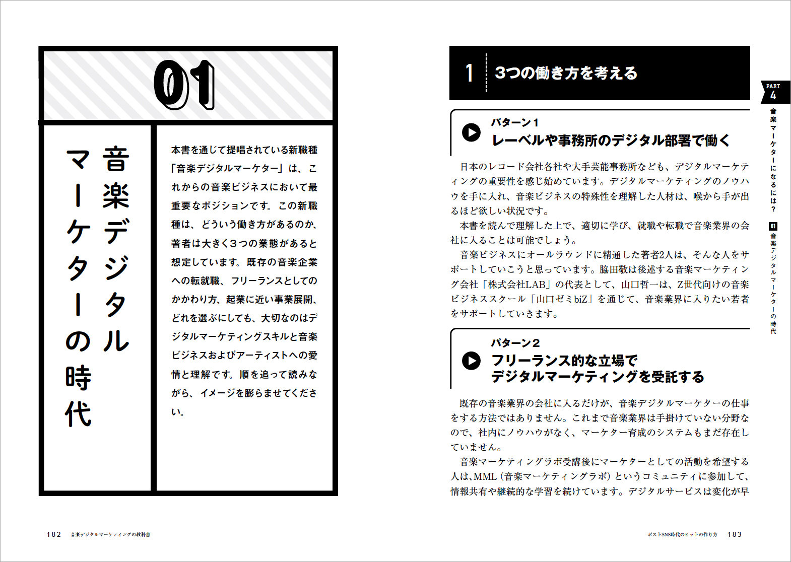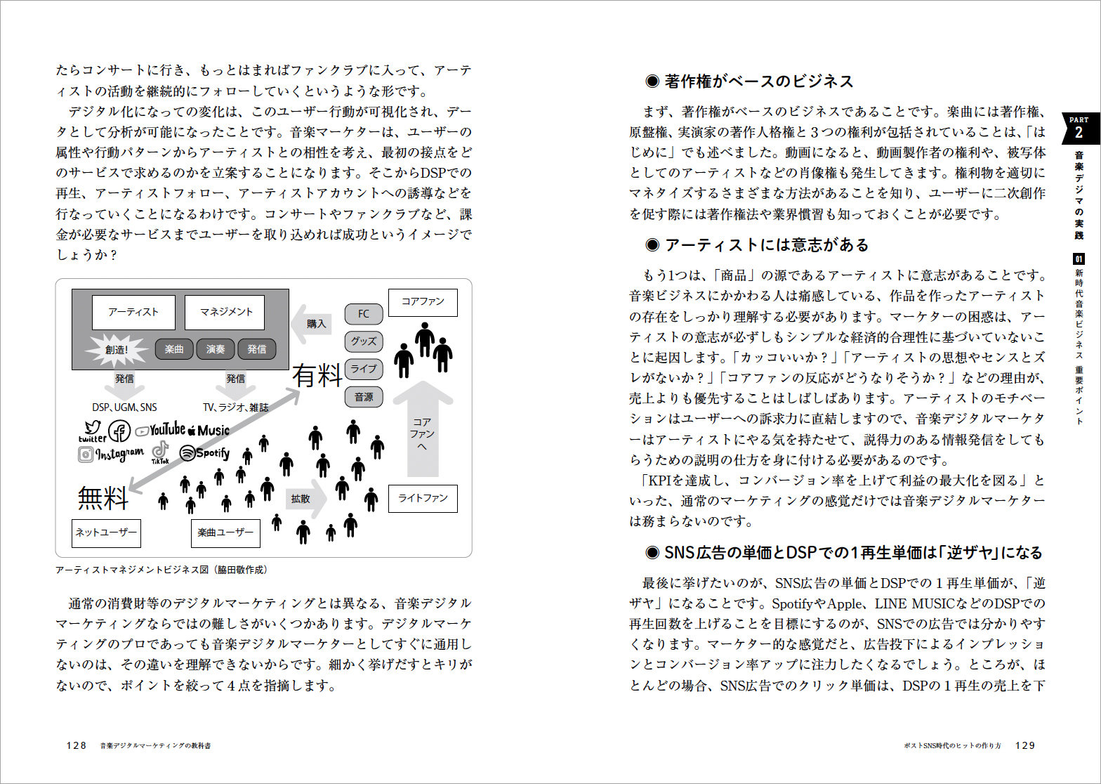 解説は「音楽マーケティングブートキャンプ」を主催するなど、日本の音楽デジタルマーケティングを主導する山口哲一、脇田敬の両氏。経験に裏打ちされたリアルなノウハウとマインドセットを、惜しげもなく開示しています。またブートキャンプでの豪華講師陣が実務をリアルに明かす講座13本のレポートが掲載されているのも貴重です。