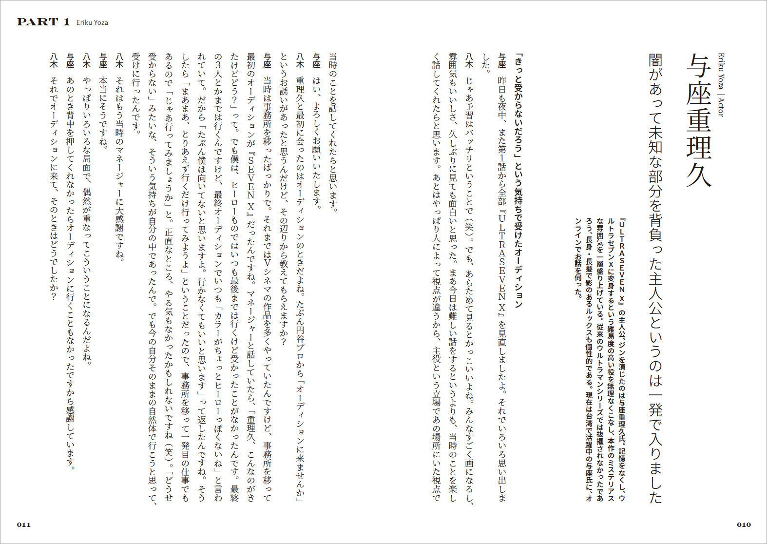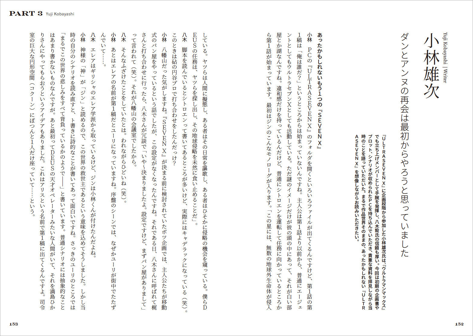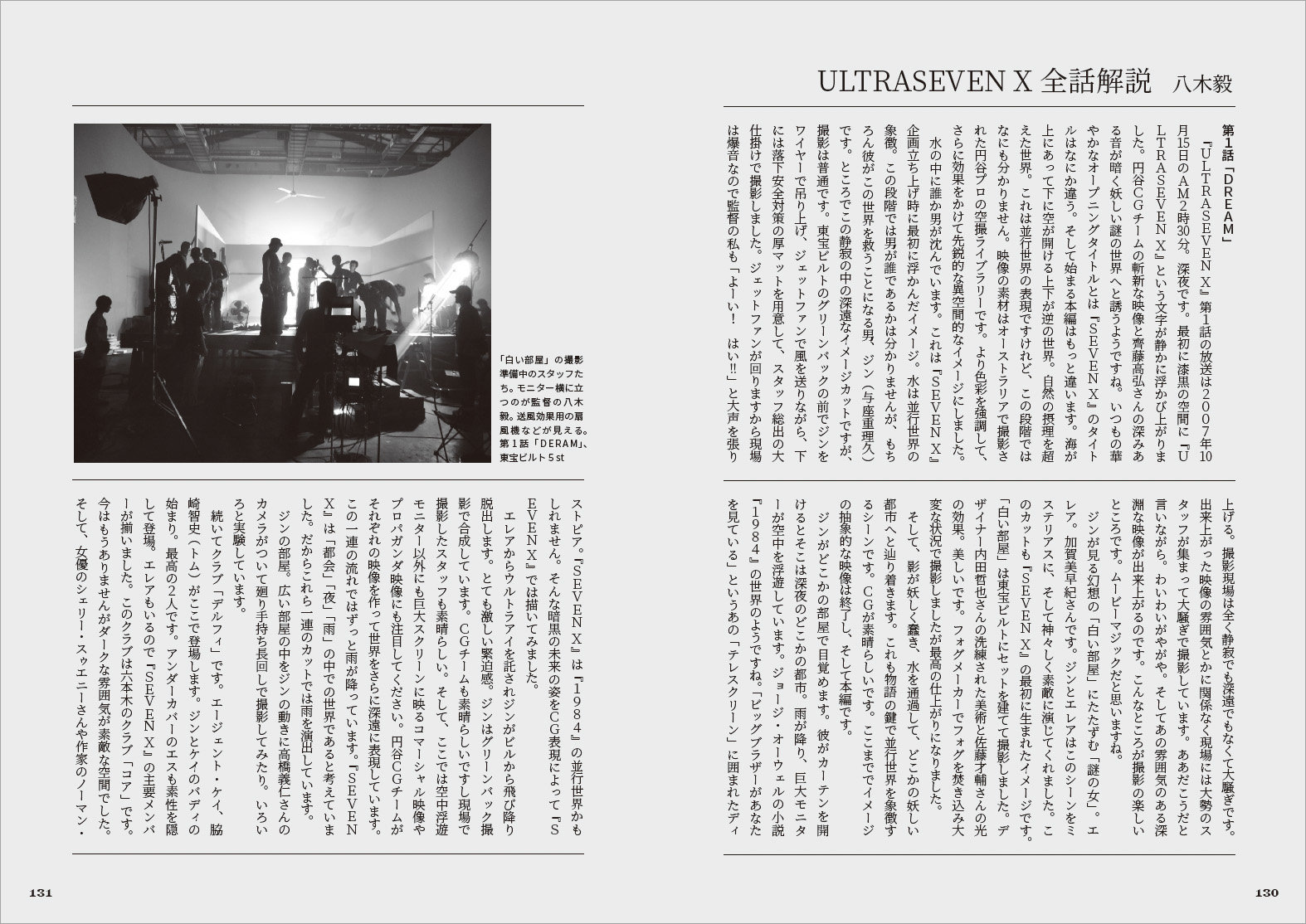 『ウルトラセブン』放映40周年を記念して制作された『ULTRASEVEN X』はメイン監督とシリーズ構成を八木毅氏が務め、SF的なテイストを追求した「大人な」作風が人気です。本書はそんな『SEVEN X』の15周年を記念して、八木監督が当時のキャスト・スタッフ総勢27名と対話を敢行。現場を知る者同士ならではの胸襟を開いた本音トークが、『SEVEN X』の魅力、現在性を明らかにしていきます。また美術デザイナー・内田哲也氏のデザイン画をはじめ、現場スナップなどのビジュアル要素も多数掲載し、目でも楽しめる内容となっています。